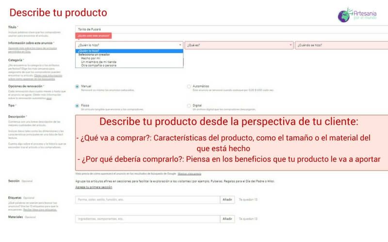 Eso quiere decir que quien aterriza en Etsy lo hace buscando precisamente eso. Si vendes artesanía o la quieres comprar, estás en el lugar correcto.