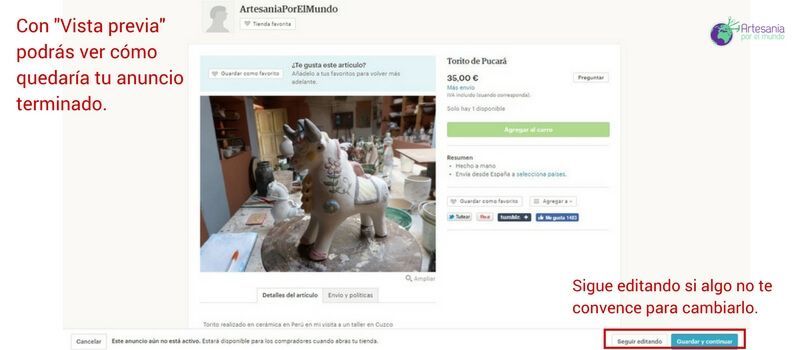 Gracias Beatriz, soy de Panamá. Intentaré abrir mi tienda en Etsy gracias a toda la info que gentilmente haz compartido con nosotros los artesanos. Antes no me atrevía pero gracias a este artículo me siento más confiada en intentarlo. Te deseo éxitos futuros y bendiciones por tu disponibilidad de ayudar a este sector económico que carece de ayuda específica como esta para sacar su negocio adelante.